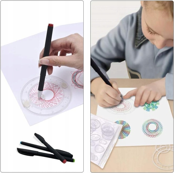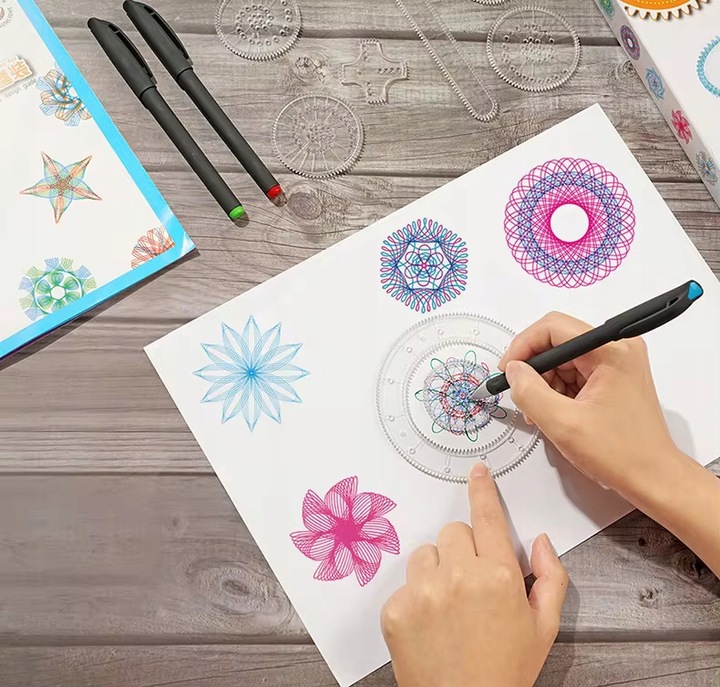 SPIROGRAF SZABLONY WZORY DO RYSOWANIA PISAKAMI KREATYWNY ZESTAW EDUKACYJNY