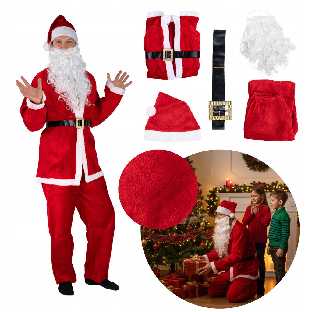 STRÓJ ŚWIĘTEGO MIKOŁAJA KOSTIUM ŚWIĄTECZNY PRZEBRANIE GWIAZDOR PLUSZOWY