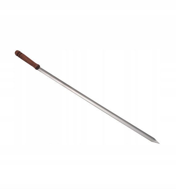 Szampur do szaszłyków to narzędzie przeznaczone do przygotowywania szaszłyków oraz innych potraw mięsnych i warzywnych na grillu lub ognisku. Wykonany jest ze stali nierdzewnej, co zapewnia jego trwałość oraz łatwość w czyszczeniu. Posiada wygięte w kształcie litery V ostrze, które zwiększa sztywność szampura oraz zapobiega ślizganiu się potraw. Szpiczasta końcówka ostrza ułatwia nabijanie produktów. Drewniana rączka impregnowana chroni przed oparzeniem i zapewnia komfortowe użytkowanie. Szampur jest kompatybilny z wieszakami ściennymi, co ułatwia jego przechowywanie.