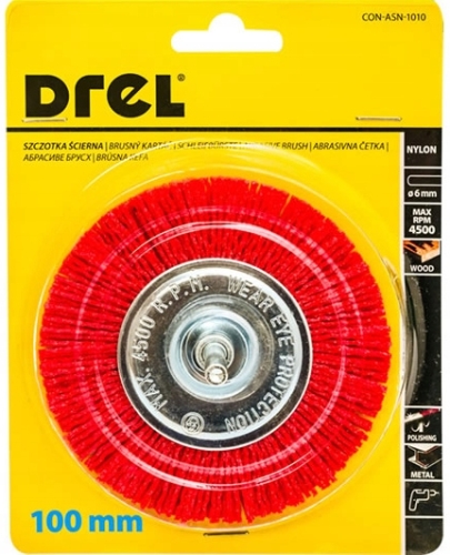 SZCZOTKA DRUT NYLONOWY TARCZOWA 100MM TRZPIEŃ6MM