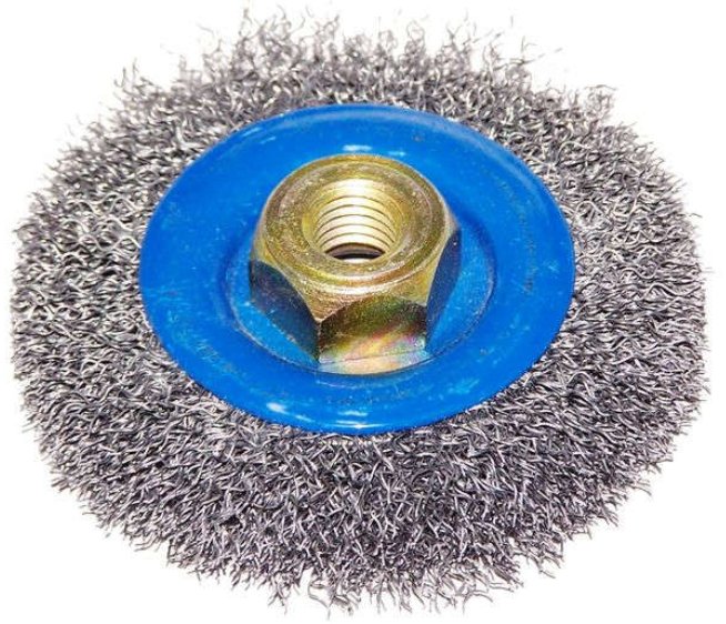 Szczotka tarczowa splatana na szlifierkę. Falisty gęsty drut. Doskonała jakość, wysoka wydajność przy czyszczeniu itp.