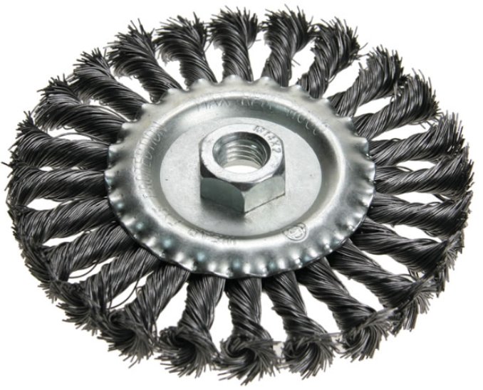 Szczotka tarczowa splatana na szlifierkę. Falisty gęsty drut. Doskonała jakość, wysoka wydajność przy czyszczeniu itp.