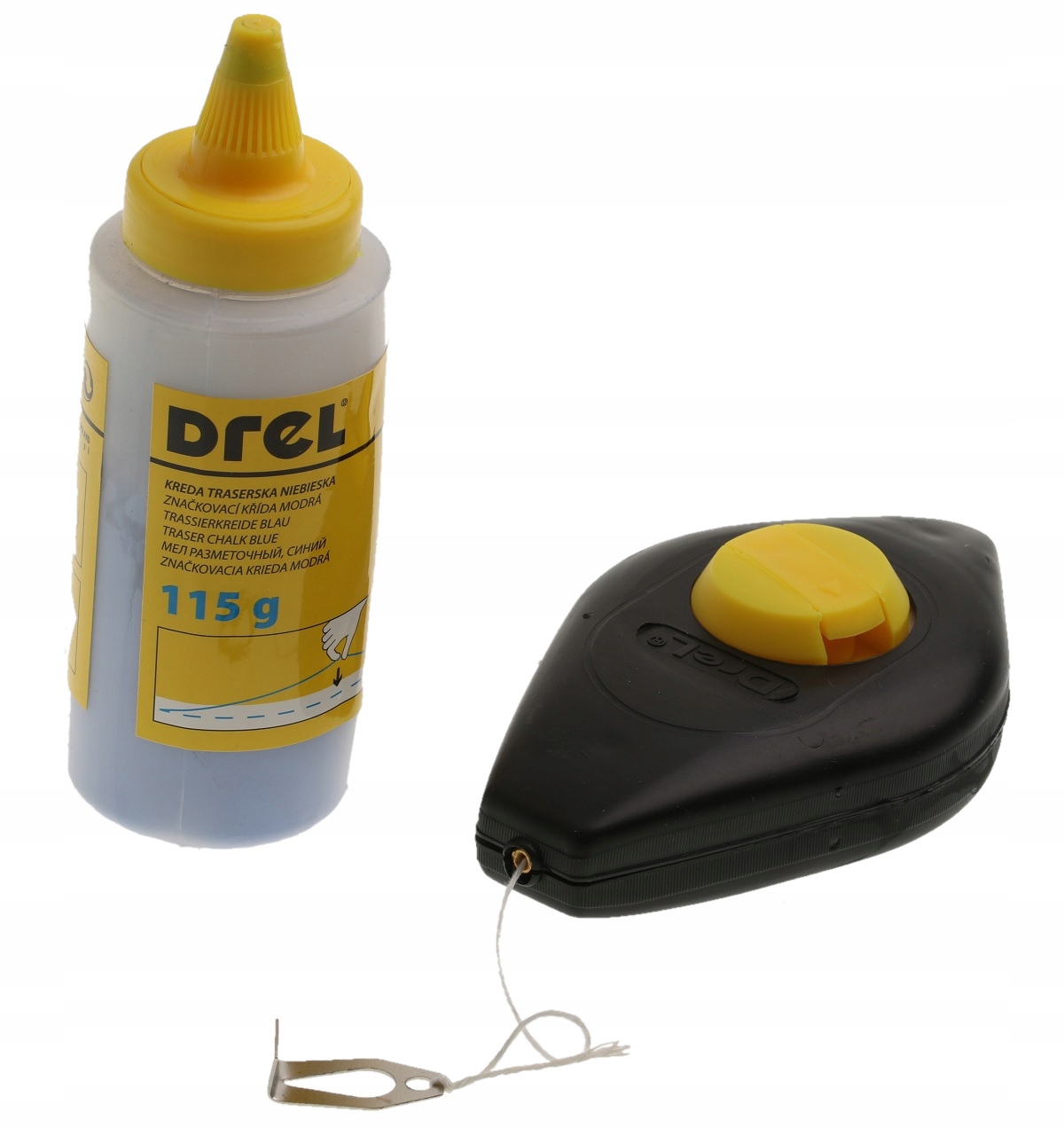 - Sznur traserski, nawinięty w plastikowej obudowie z blokadą umożlwiająca dostosowanie długości sznurka do własnych potrzeb.