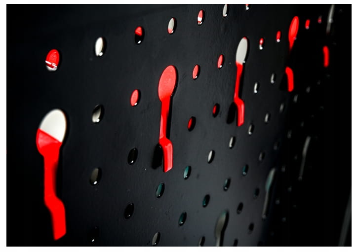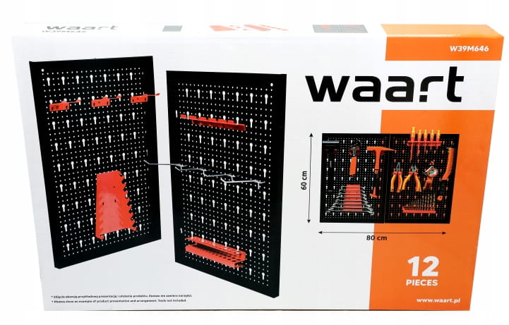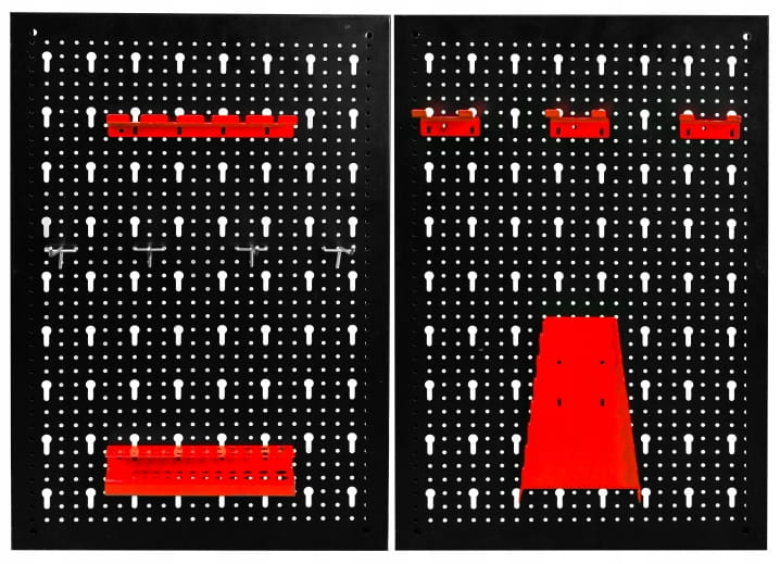 ▶ Obszerny zestaw akcesoriów obejmuje zarówno proste haczyki, jak i złożone uchwyty do kluczy płasko-oczkowych, śrubokrętów, młotków itp. Solidną konstrukcję stalową można zainstalować, w zależności od dostępnej przestrzeni, zarówno w warsztacie, garażu czy też piwnicy.