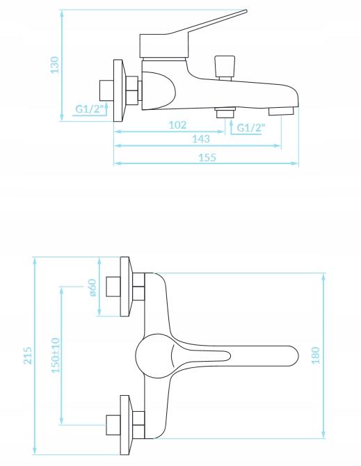 TIBI KRAN BATERIA WANNOWA ŚCIENNA BEZ NATRYSKU - BQY_010D