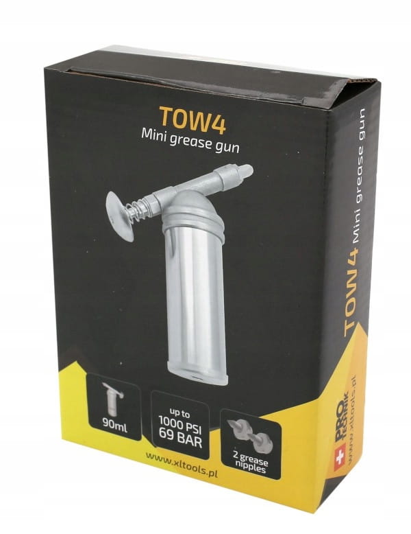 ▶️ W zestawie znajdują się dwie końcówki o kącie 90° i 50°, co umożliwia wygodną pracę. Towotnica należy wypełnić luźnym smarem przed użyciem.