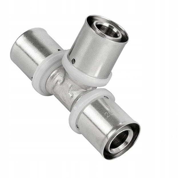 TRÓJNIK ZACISKOWY 25 PEX ZŁĄCZKA ZACISK ZAPRASOWYWANY MOSIĄDZ NIKLOWANY