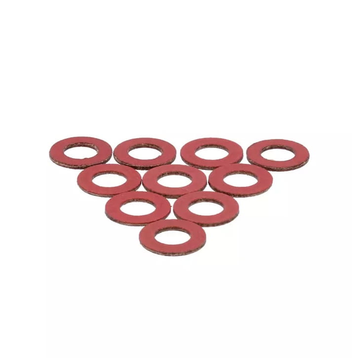 ▶ Pierścienie wykonane z fibry mają bardzo dobre zdolności uszczelniające. Materiał zwiększa swoją objętość pod wpływem wilgoci. Dzięki temu uszczelniane miejsce jest dokładnie dociśnięte. Każdy pakiet zawiera 5 uszczelek.