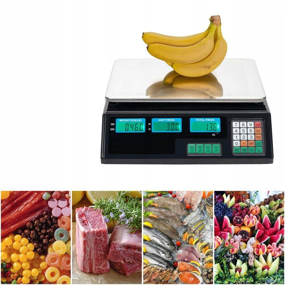 WAGA ELEKTRONICZNA SKLEPOWA MAGAZYNOWA WYŚWIETLACZ LCD LED MAX 40 KG 220V