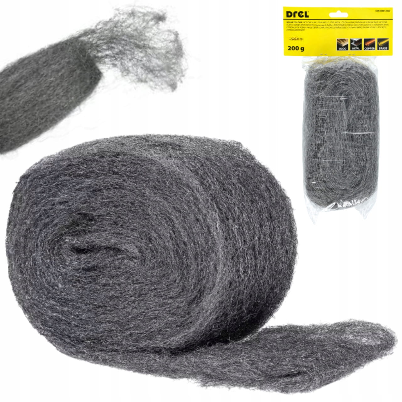WEŁNA STALOWA P000 200G WATA POLERSKA ELASTYCZNA DO CZYSZCZENIA POLEROWANIA