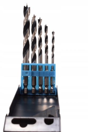 Bardzo dobrej jakości wiertła do drewna z chwytem 1/4 HEX. Wiertła wykonane zostały z stali HCS(stal węglowa). Praktyczne etui pozwala zachować wiertła w należytym porządku