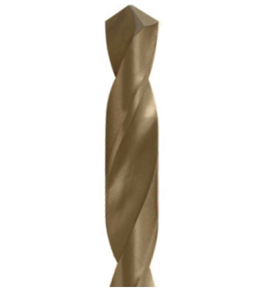 Wiertło wykonane ze stali szybkotnącej (M35) o twardości 66°HRC (+/-1°), kącie wierzchołkowym 135°,szlif prosty bez korekty ścinu, dający właściwości samocentrujące bez konieczności punktowania.
