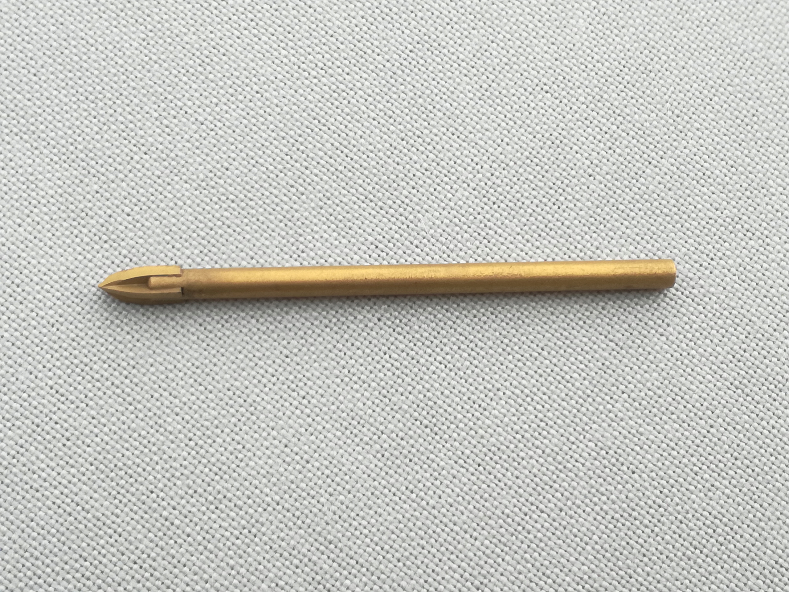- wiertło wykonane jest ze stali narzędziowej hartowanej, a część robocza (czubek) z czterech szlifowanych ostrzy tnących wykonanych z węglika spiekanego o szlifowanych krawędziach ułatwiających precyzyjne rozpoczęcie wiercenia.