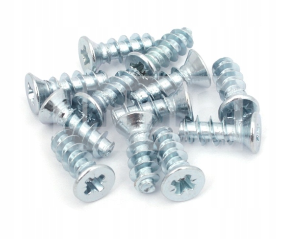 Wkręt EURO 6.3x16 (przedłużąny) do mocowania prowadnicy zawiasów puszkowych. Cena za 100szt (wystarcza dla 50 zawiasów, 2szt mocują prowadnicę). Eurowkręt.