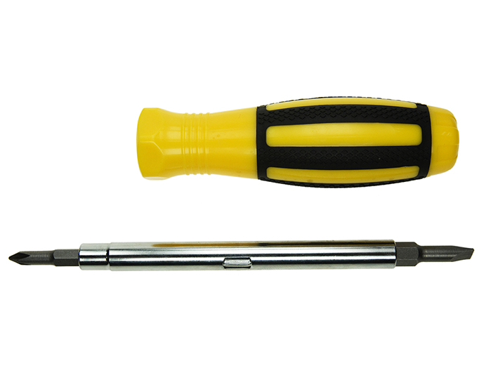 Solidny zestaw śrubokręta z bitami. Trzpień został wykonany z twardej stali narzędziowej CRV. Rękojeść wykonana z odpowiednio dobranych tworzyw o różnych twardościach. Polecany do prac montażowych w różnych branżach.