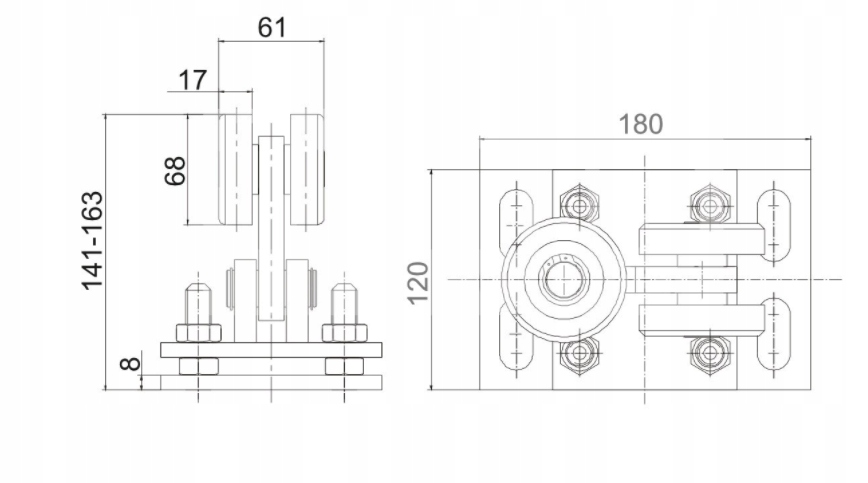 WÓZEK BRAMY OGRODZENIOWEJ 2+1 ROLKA SZYNA 80IPM - RBR802