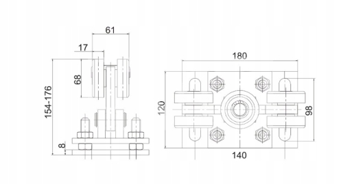 - Wózek 5-cio rolkowy do bram przesuwnych do szyny 80x80x5mm.
