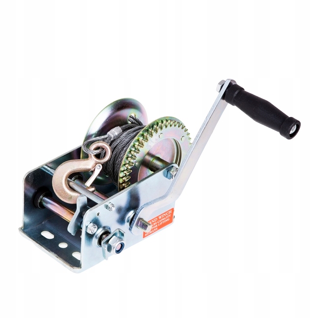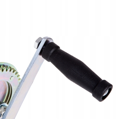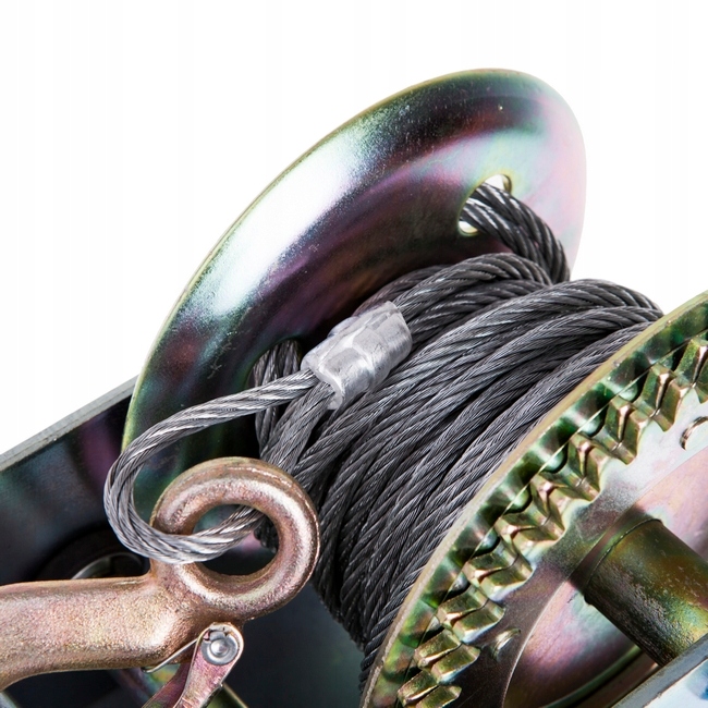 wyciągarka została wykonana z wysokiej jakości materiałów, odlewany hak z blokadą, koło zębate z mechanizmem zapadkowym