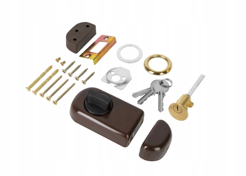 Zamek drzwiowy nawierzchniowy z pokrętłem.
