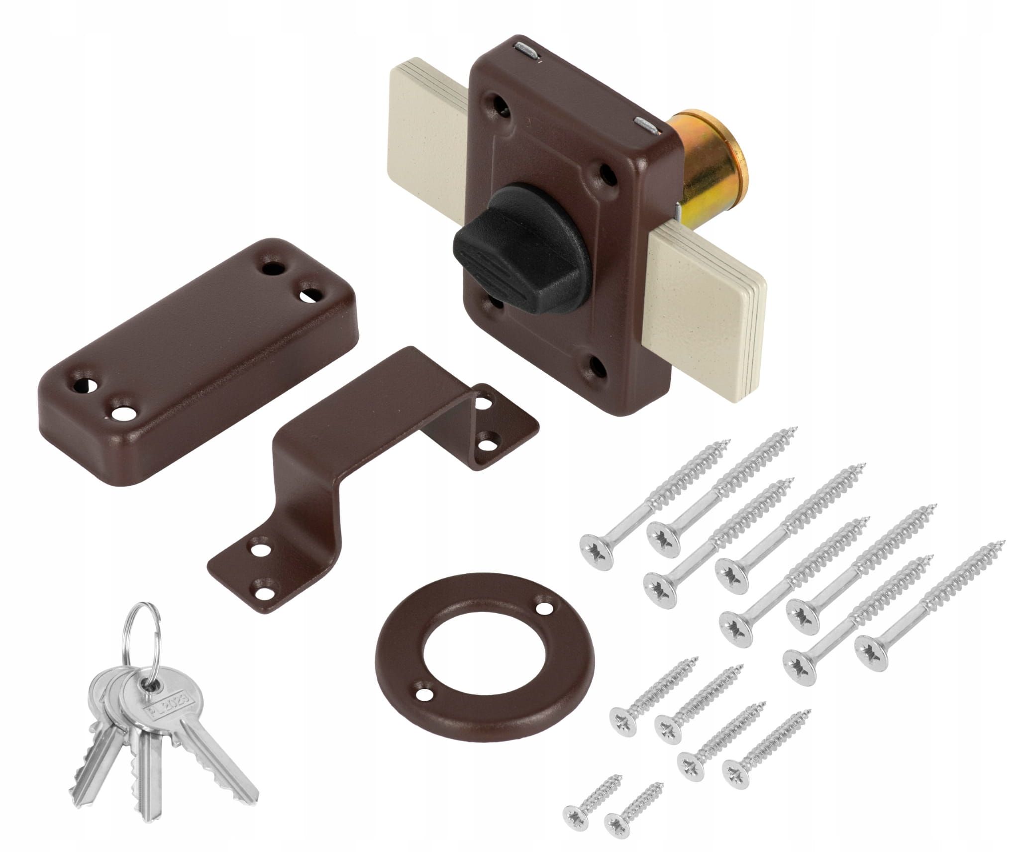 ✔️W komplecie: zamek z wkładką, szyld czołowy, 3 klucze nacinane, elementy montażowe, zaczep do drzwi.