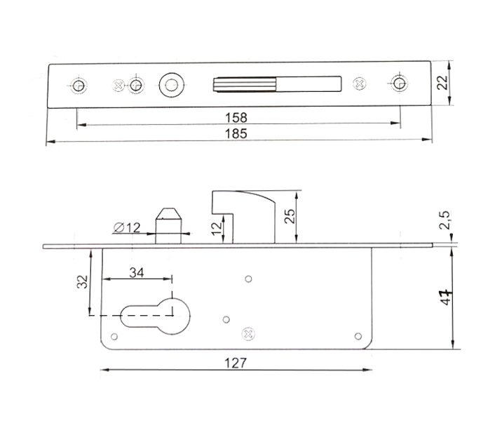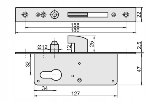 Zamek bramowy hakowy H-50 przeznaczony jest do bram wjazdowych jak również do drzwi wejściowych przesuwnych.