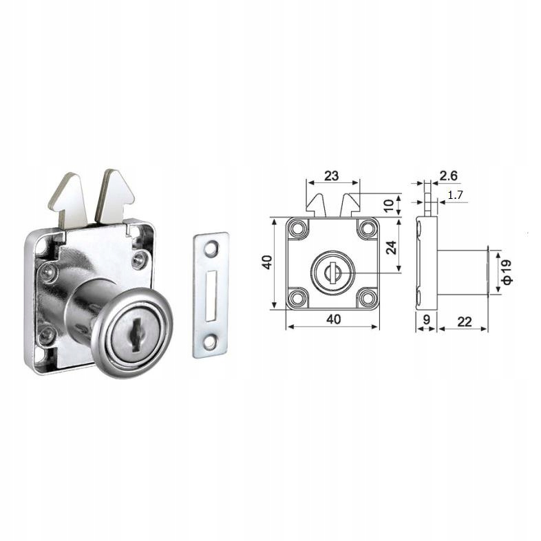 ZAMEK MEBLOWY HAKOWY DO MEBLI SZUFLAD 19 x 22 mm