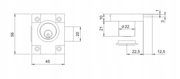 Zamek meblowy wierzchni, zasuwkowy, bębenkowy ZMB1.
