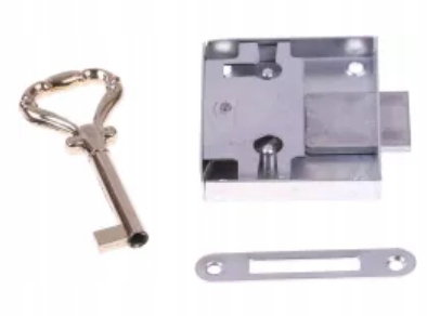 ZAMEK MEBLOWY NAKŁADANY 30MM OCYNK Z KLUCZEM