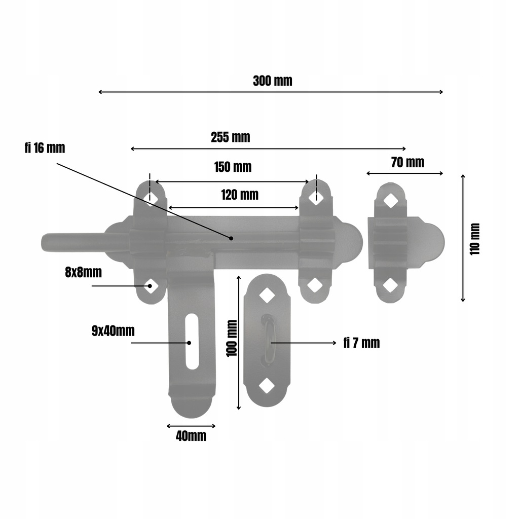 ZASUWA BRAMOWA ZASUWKA DRZWIOWA RYGIEL DO BRAMY GARAŻU DRZWI 300 MM OCYNK