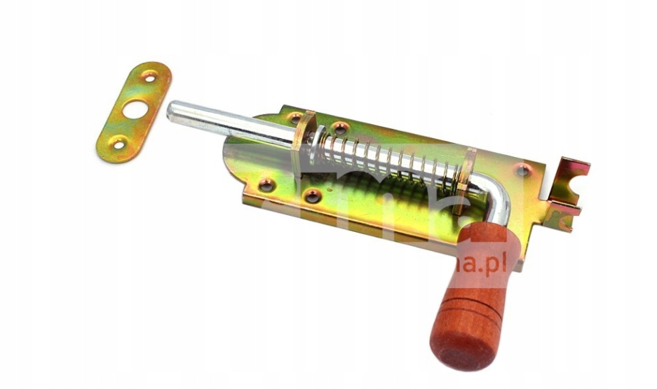 Estetyczna zasuwka drzwiowa, sprężyna wspomagająca pracę. Szeroki korpus.