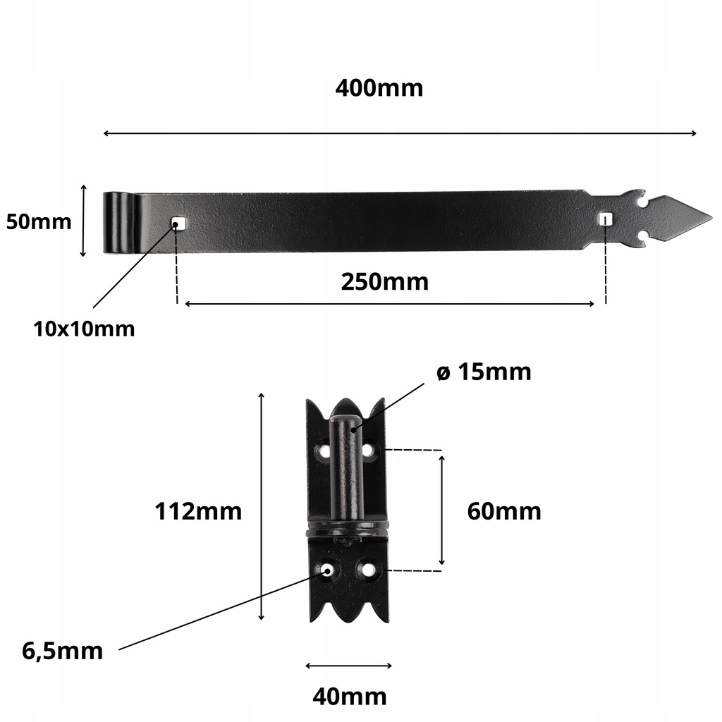Główną cechą zawiasu jest jego uniwersalność. Dzięki długości 400 mm pasuje do różnych rozmiarów okiennic, drzwi, bram czy furtek. Solidna konstrukcja zapewnia stabilne utrzymanie nawet ciężkich elementów.