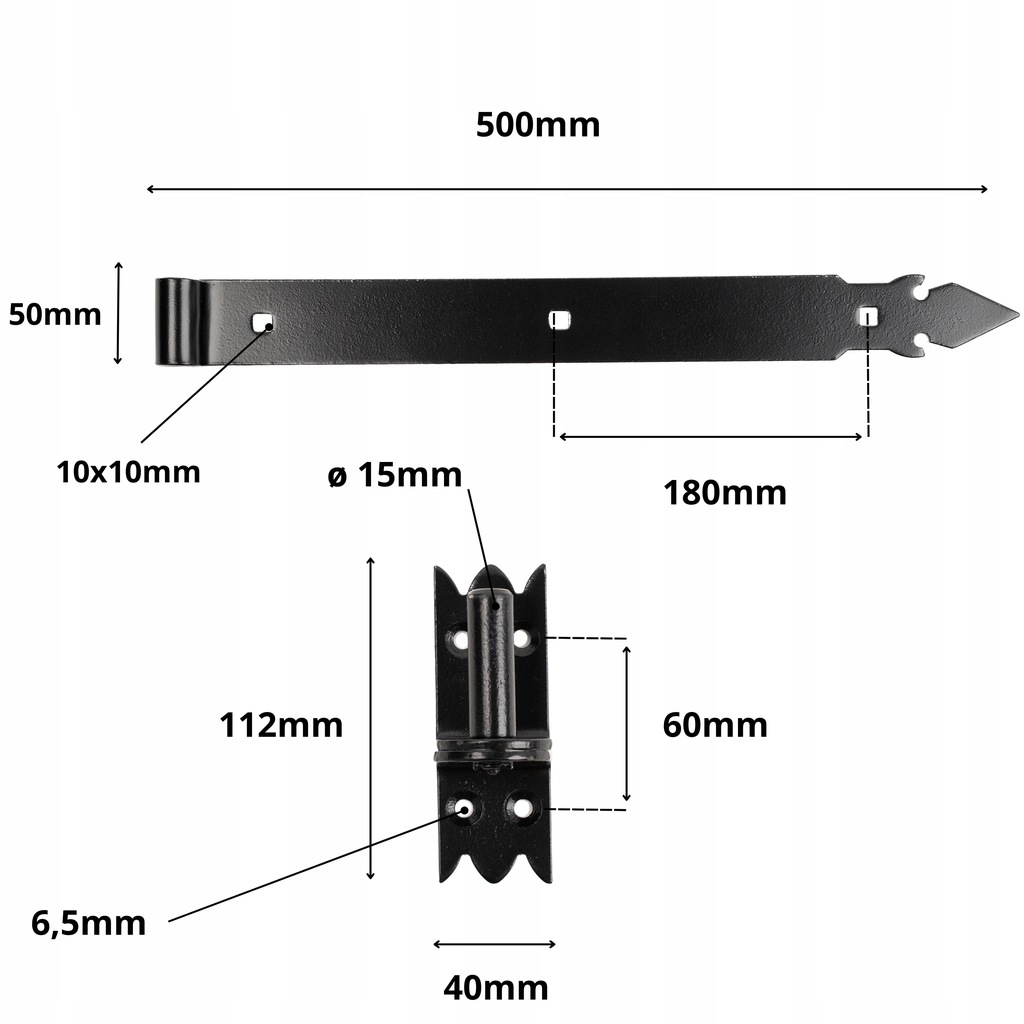 Główną cechą zawiasu jest jego uniwersalność. Dzięki długości 500 mm pasuje do różnych rozmiarów okiennic, drzwi, bram czy furtek. Solidna konstrukcja zapewnia stabilne utrzymanie nawet ciężkich elementów.