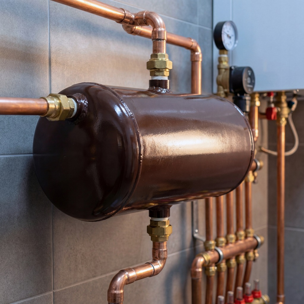 Naczynie wyrównawcze rozwiązuje typowe problemy instalacji C.O., takie jak: wahania ciśnienia przy nagrzewaniu i schładzaniu wody, ryzyko wyrzutu wrzątku podczas zagotowania wody w kotle na paliwo stałe, zapowietrzanie grzejników oraz niekontrolowane wycieki z zaworów bezpieczeństwa w wyniku braku kompensacji objętości. W praktyce stabilizuje pracę układu i wydłuża żywotność elementów armatury grzewczej.