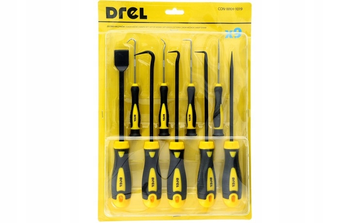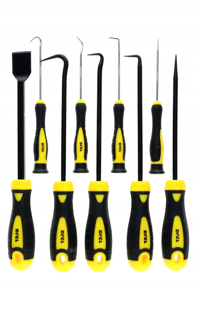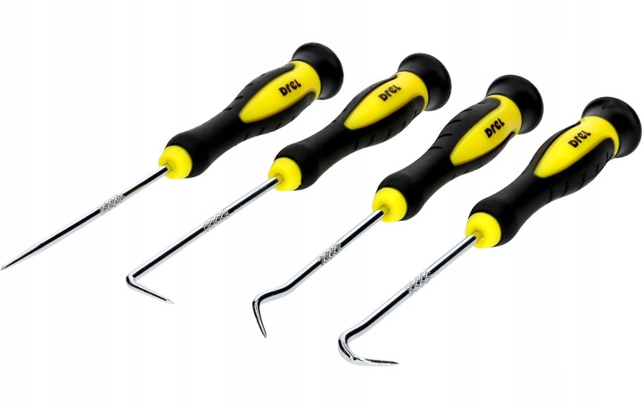 Zestaw haczyków z rękojeścią. Haczyki posiadają hartowane i chromowane groty. Rękojeść wykonana z wysokogatunkowego antypoślizgowego materiału