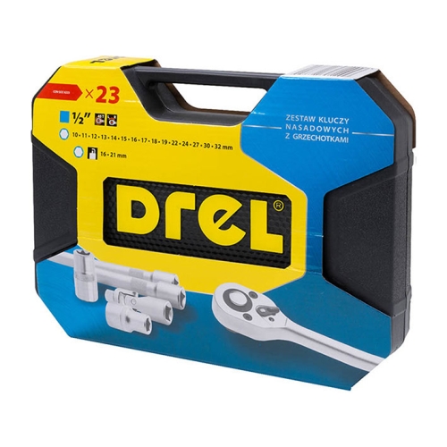 DREL - to przede wszystkim narzędzia ręczne stworzone z myślą o grupie wymagających użytkowników. Produkty jakie możemy kupić to tarcze korundowe, komplety wierteł, brzeszczoty do wyrzynarek, osprzęt do narzędzi wielofunkcyjnych, klucze, młotki, palniki, pistolety do pian montażowych. Wprowadzone również elektronarzędzia doskonale uzupełniają szeroką gamę marki Drel.