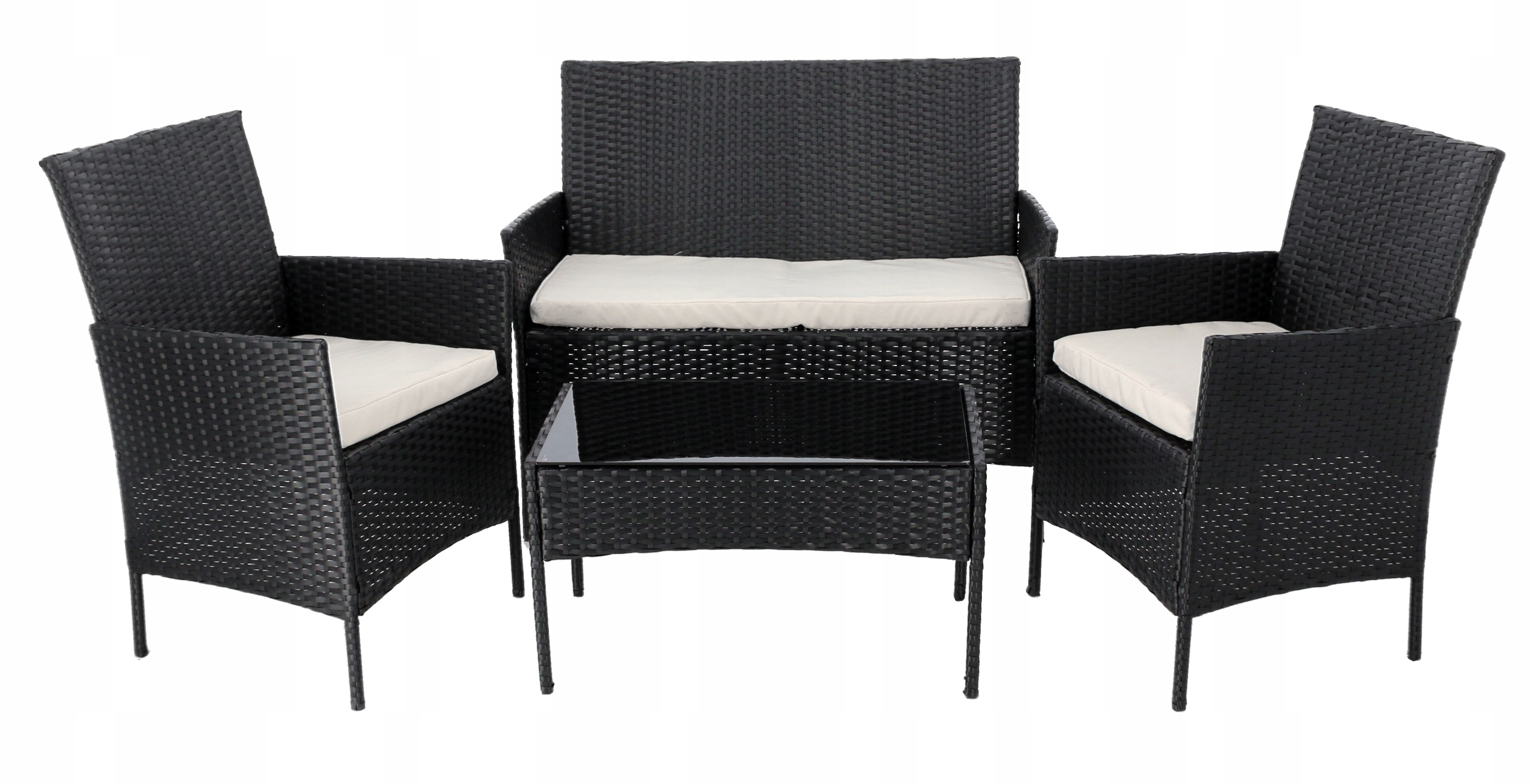 ZESTAW MEBLI OGRODOWYCH 4 ELEMENTY SOFA 2 FOTELE ŁAWA TECHNORATTAN CZARNY