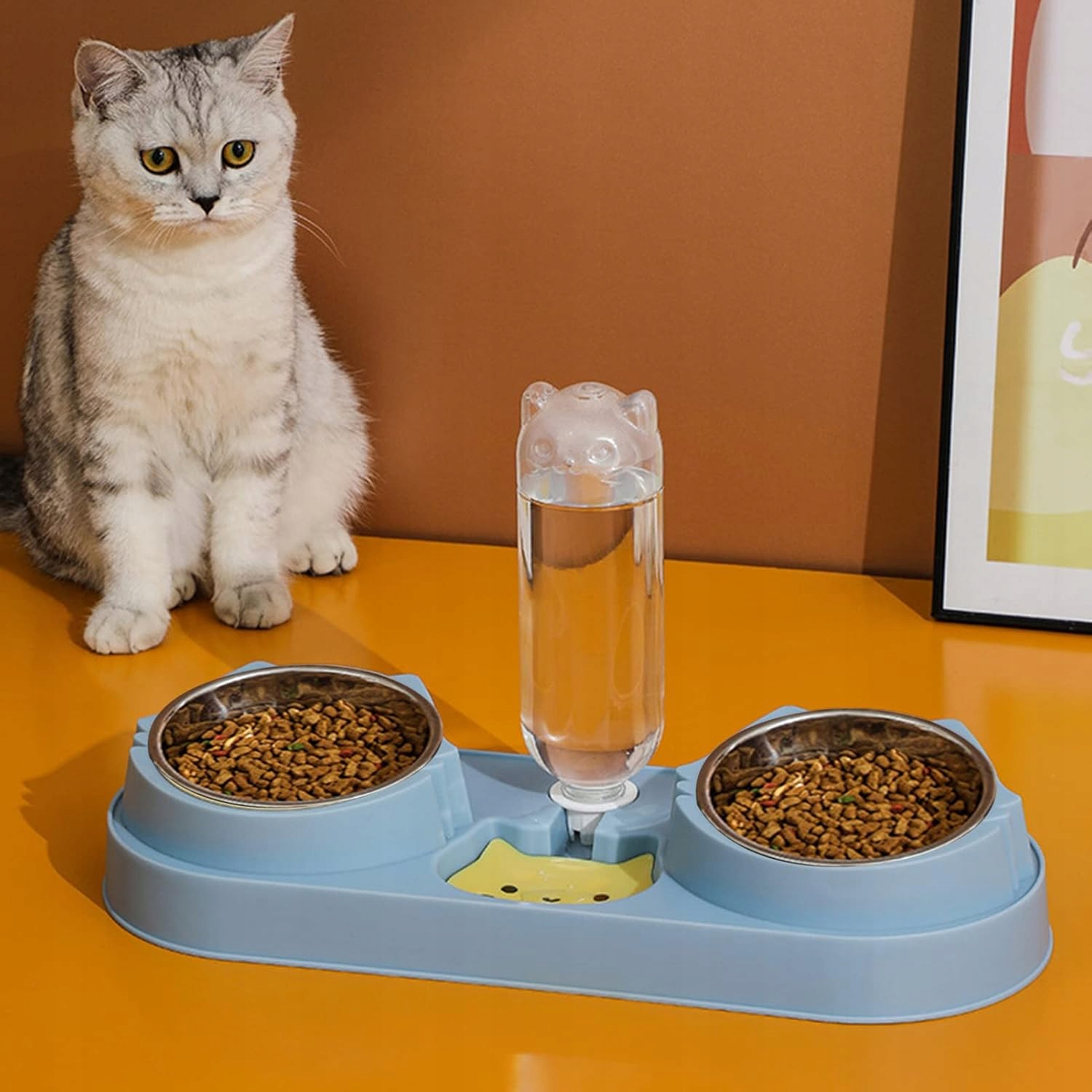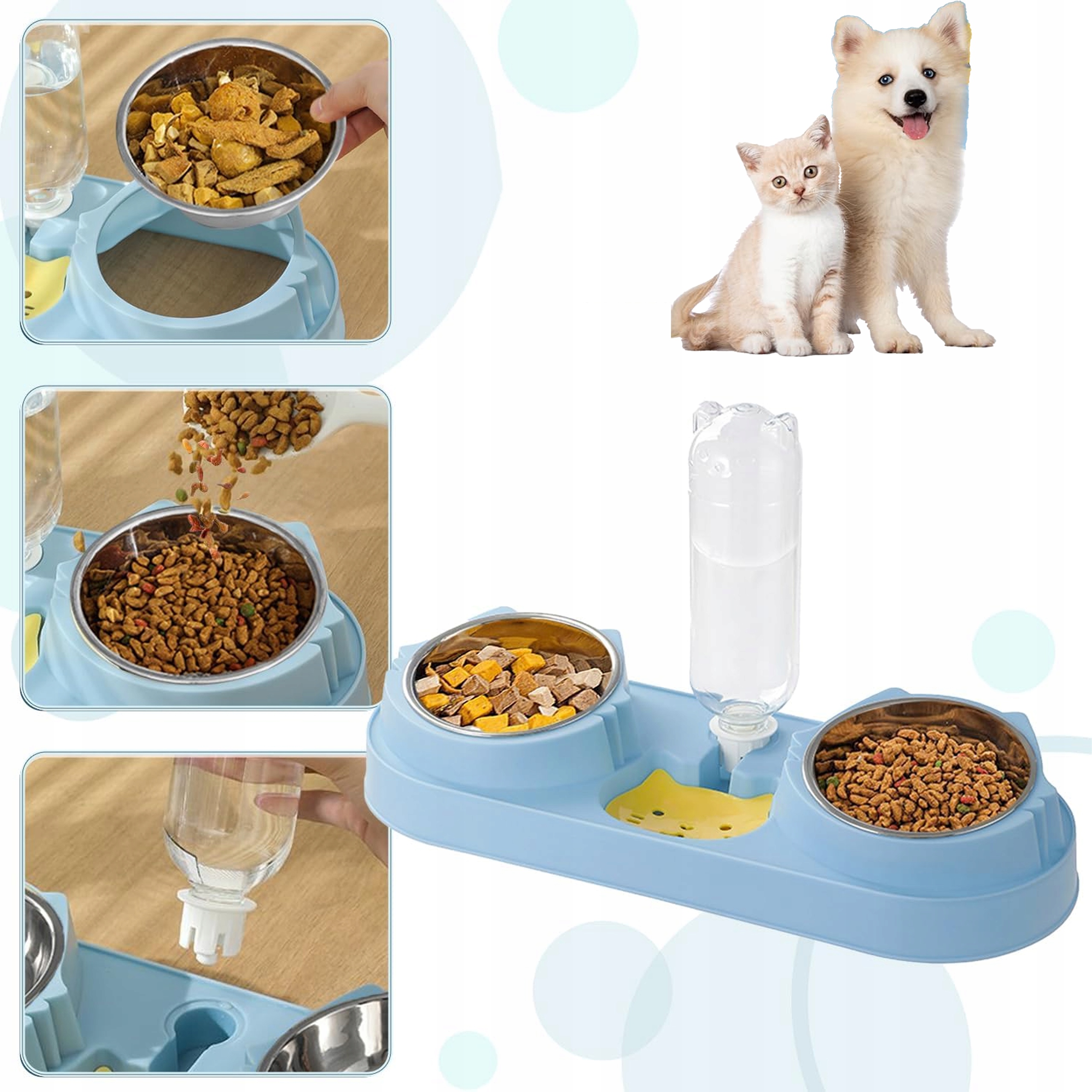 ZESTAW MISEK DLA PSA KOTA PODWÓJNA MISKA Z DOZOWNIKIEM WODY NIEBIESKA