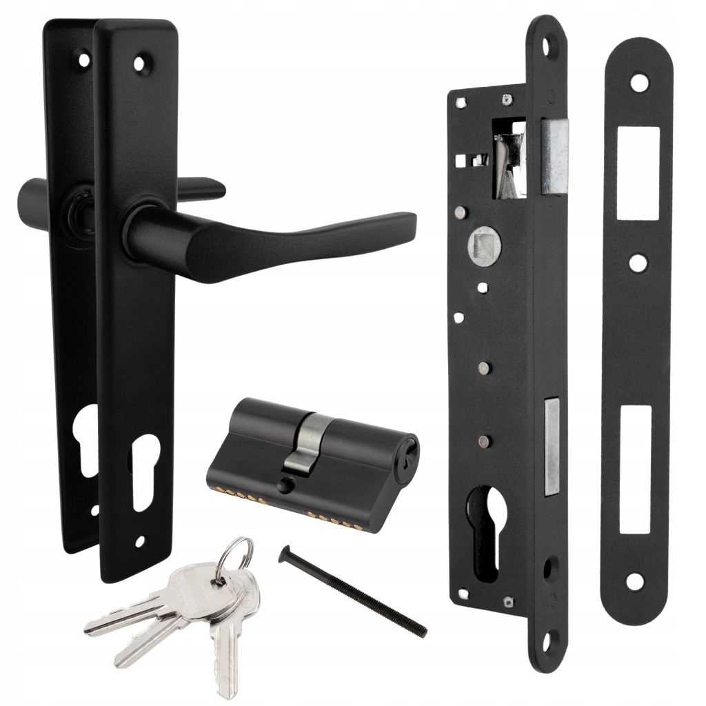 ZESTAW NATI DO FURTKI BRAMY KLAMKA 90 CZARNA ZAMEK 90/22 WKŁADKA 30/30