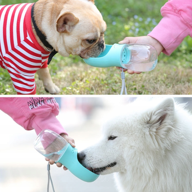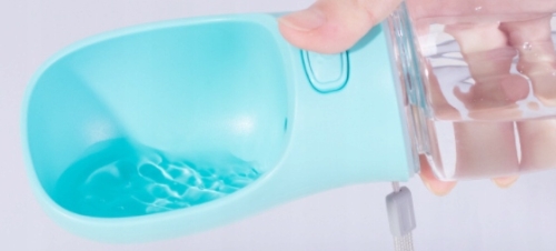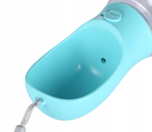 Praktyczna butelka na wodę dla psa. Idealnie sprawdzi się podczas dłuższych spacerów lub wycieczek z pupilem. Poidło wyposażone jest w przycisk blokady, dzięki czemu woda nie wyleje się w sposób niekontrolowany. Butelka składa się z dwóch części. Aby napełnić miseczkę wodą należy nacisnąć przycisk i przechylić butelkę w kierunku