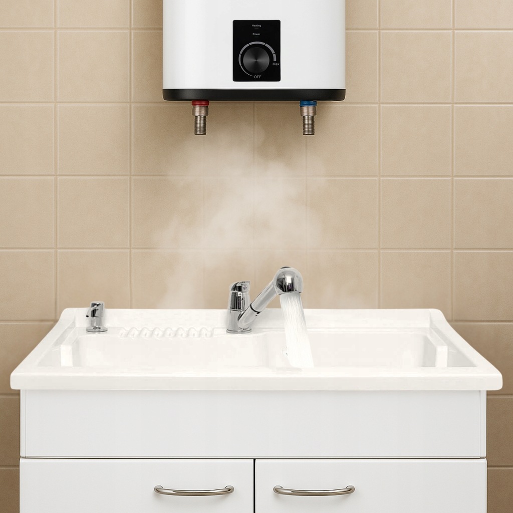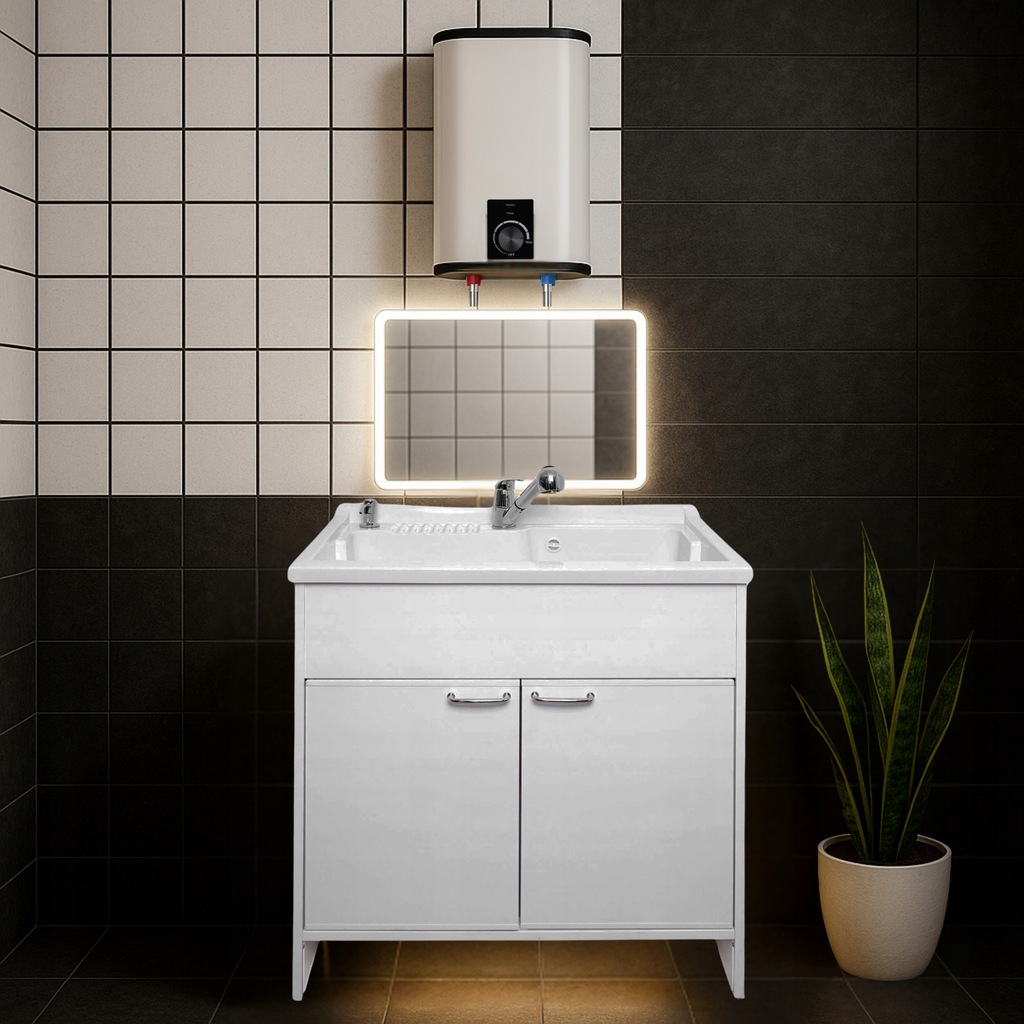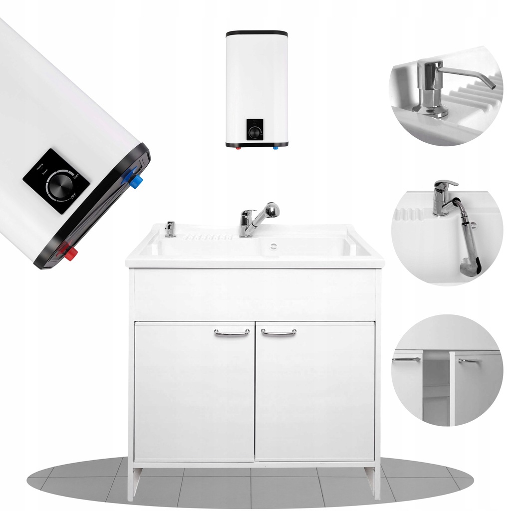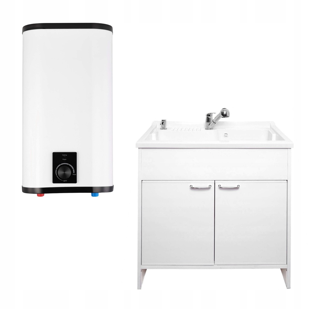 ZESTAW SZAFKA ZLEW GOSPODARCZY Z BATERIĄ I DOZOWNIKIEM PODGRZEWACZ WODY