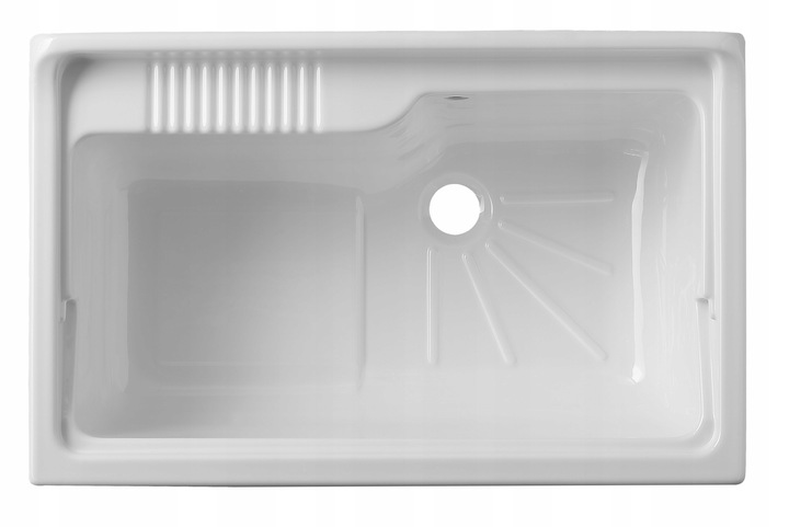 - Tradycyjny zlew gospodarczy, który dzięki swoim wymiarom i klasycznym kształcie znajdzie idealne zastosowanie w pomieszczeniach roboczych – nie rzuca się w oczy, a świetnie spełnia swoją funkcję.