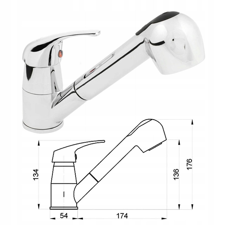 - Bateria zlewozmywakowa stojąca z wyciąganą wylewką.