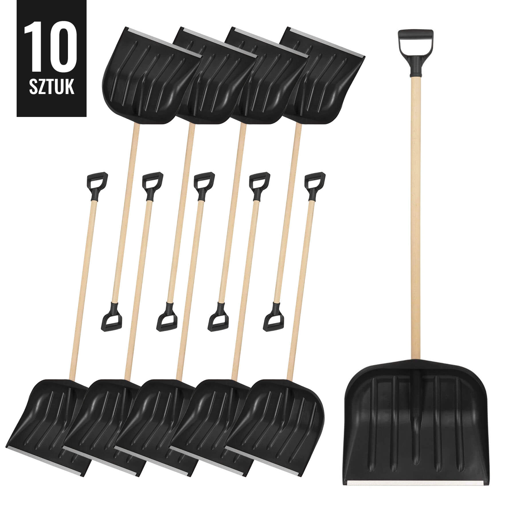 ZESTAW 10 X ŁOPATA DO ŚNIEGU ZE STYLEM DREWNIANYM - CZARNA - KOMPLETNA