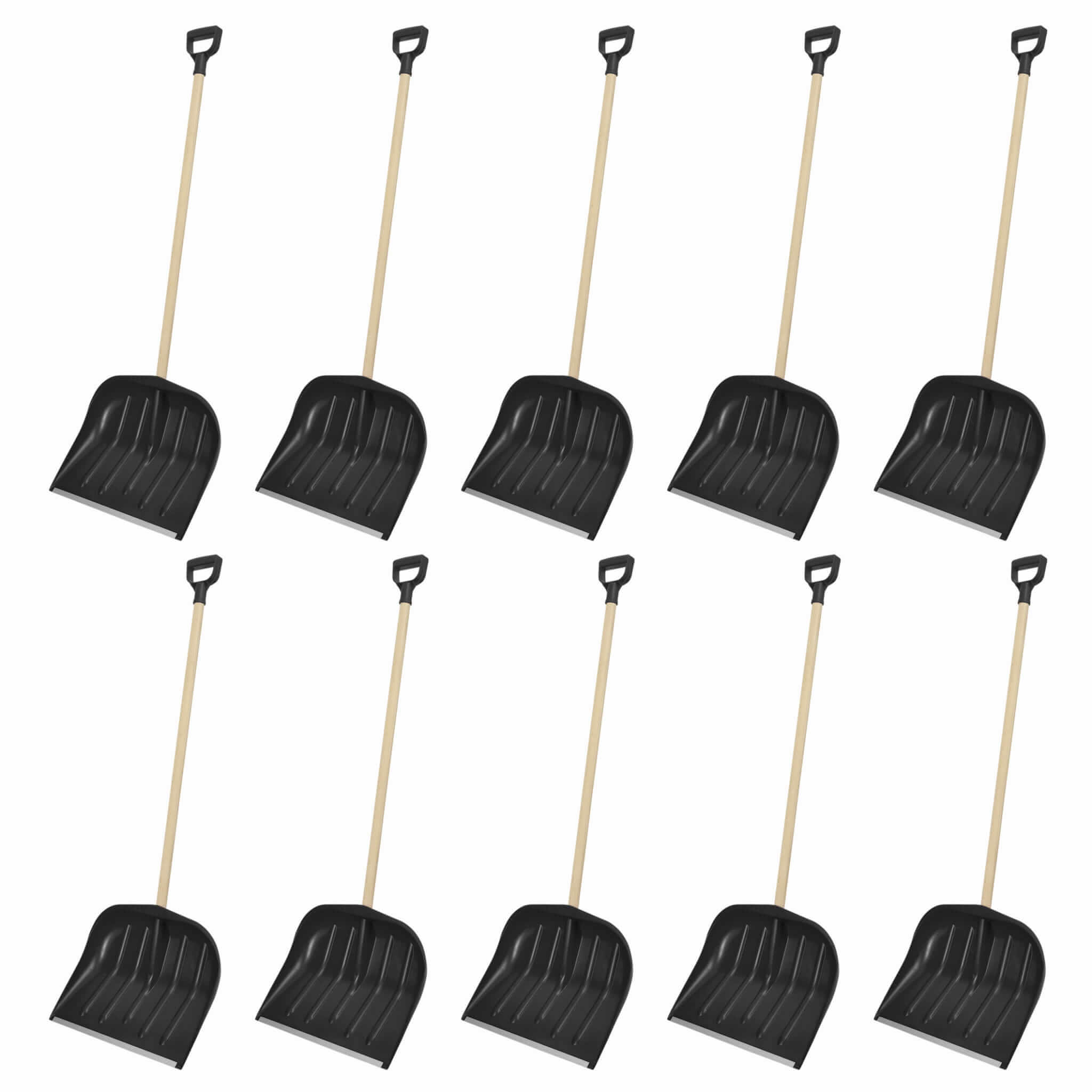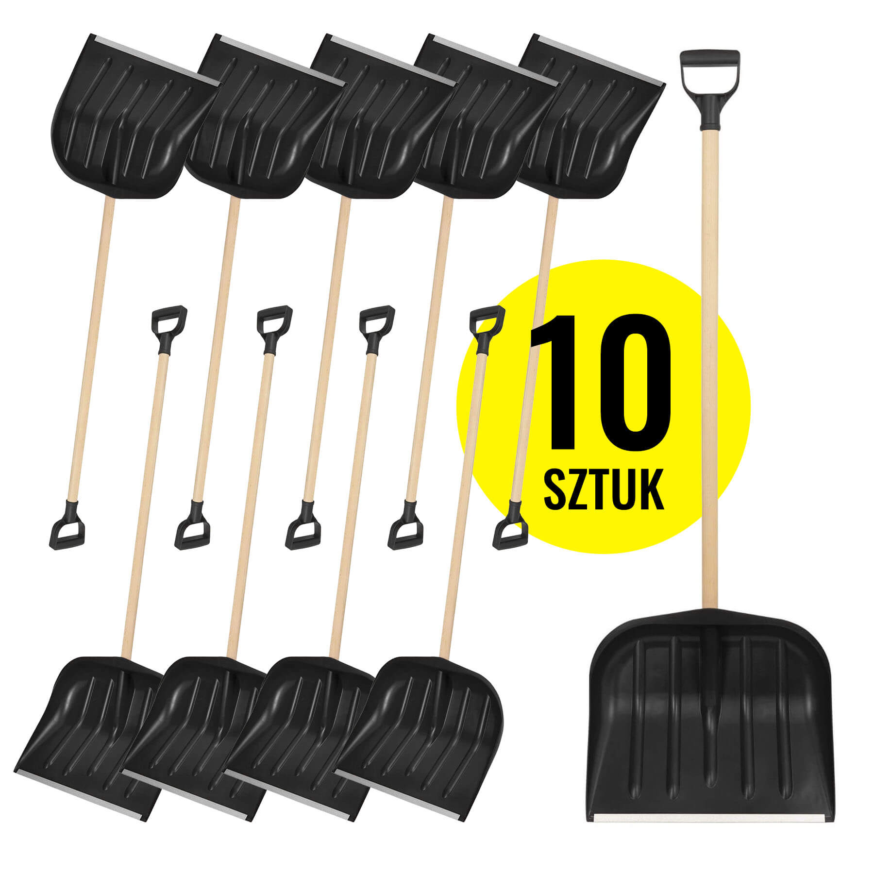 Zestaw: 10 x Łopata do śniegu - CZARNA - wzmocniona - ze stylem drewnianym