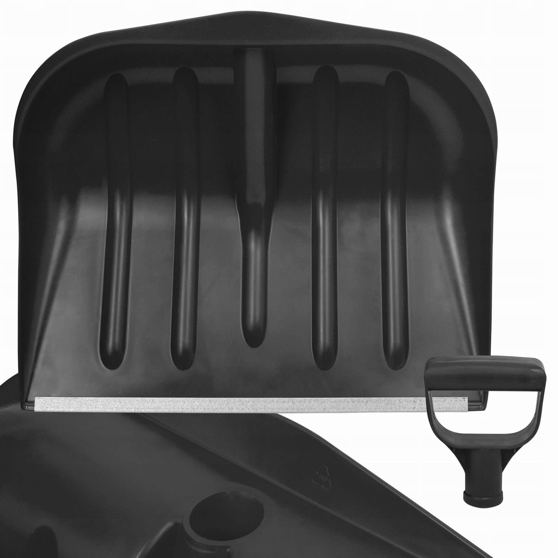 Łopata do odgarniania śniegu wykonana z tworzywa, okuta metalową listwą, posiada wzmacniające przetłoczenia i grubszy, mocny profil. Produkt jest dostarczany do samodzielnego skręcenia. Mocowanie na wkręt lub gwoździk (brak w zestawie). Plastikowa rączka w komplecie.